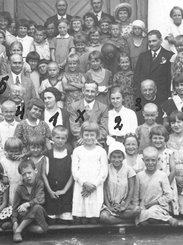 Alfred (centre) as a member of the Sejm visits a summer camp for underprivileged children, 1934.